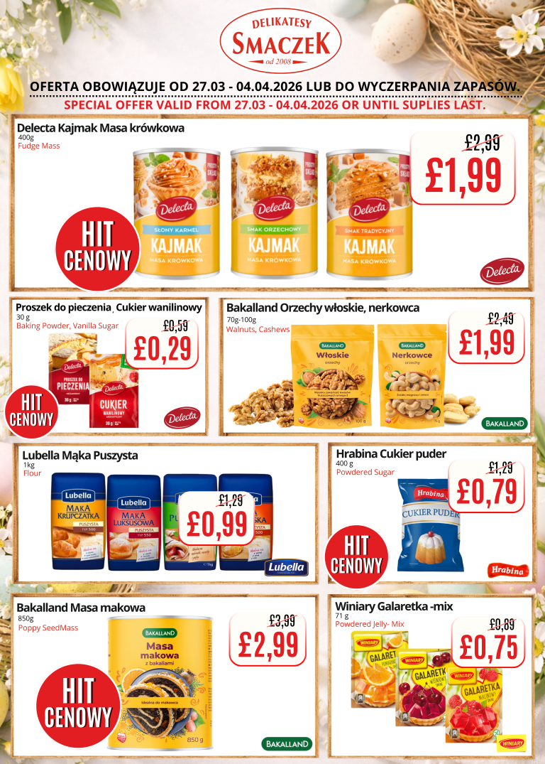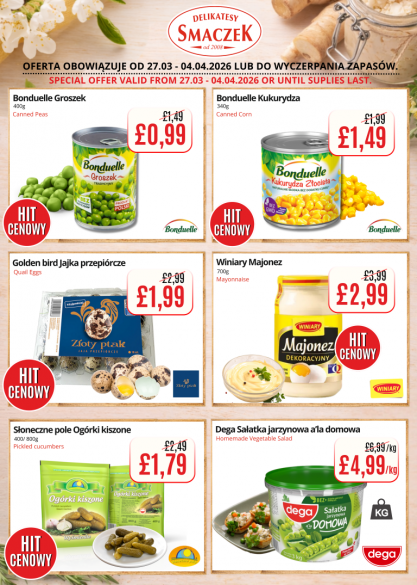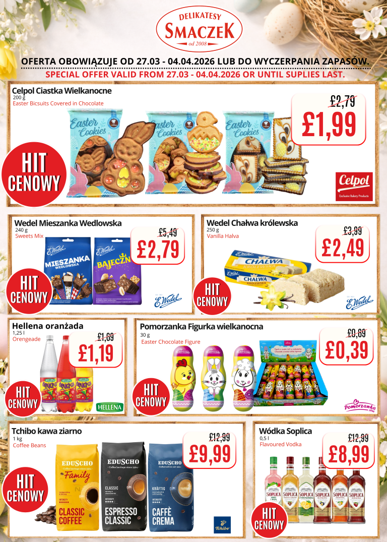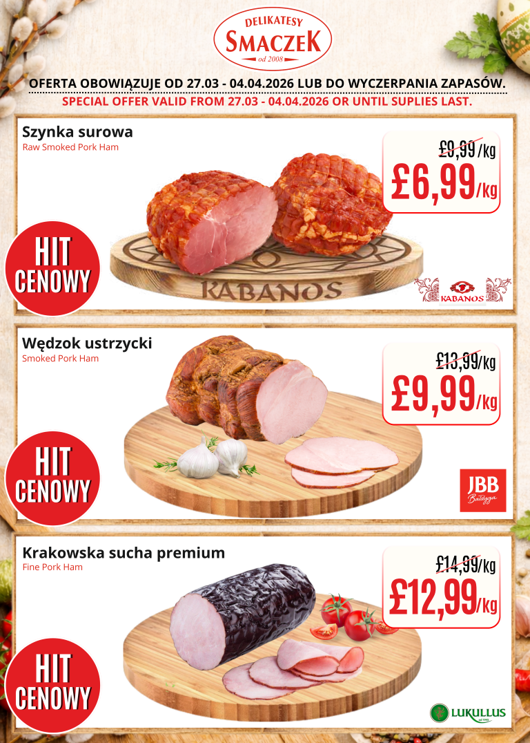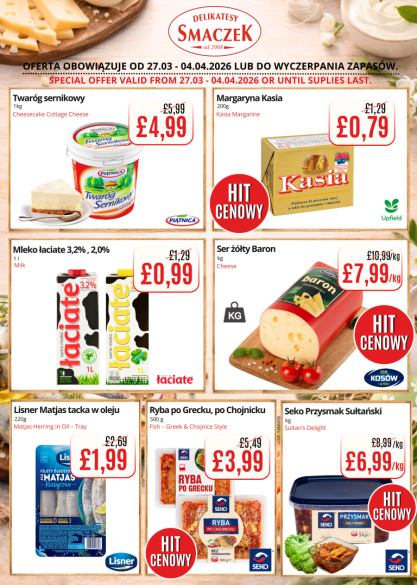 We encourage you to regularly check the availability of our products and discover delicious alternatives at discounted prices. Come and experience the variety and freshness that we always offer at Delikatesy Smaczek. Discover a taste that delights and a price that convinces!